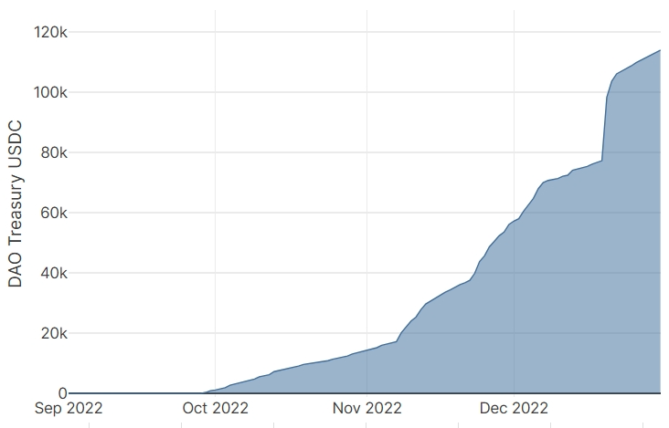 • The Star Atlas DAO treasury now holds almost 370M ATLAS and 115k USDC • The DAO treasury in USDC doubled in the last 4 weeks • All trades on the marketplace are charged a 6% marketplace fee. 1/3rd of this (2%) goes to the DAO treasury • At the beginning of December we still had discounted ships and from the December 20th we had the sale for claim stakes and CSS land • We expect the increase of the DAO treasury to slow down