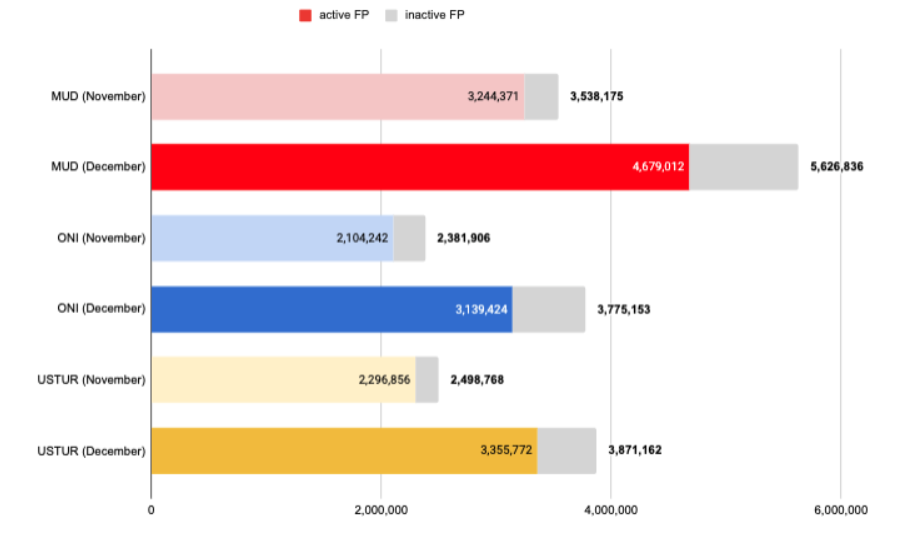 • Firepower in December calculated with the rules introduced by Sage Manual V2. Faction gains MoM: 59% (Mud), 58% (Oni), 54% (Ustur) • Source here