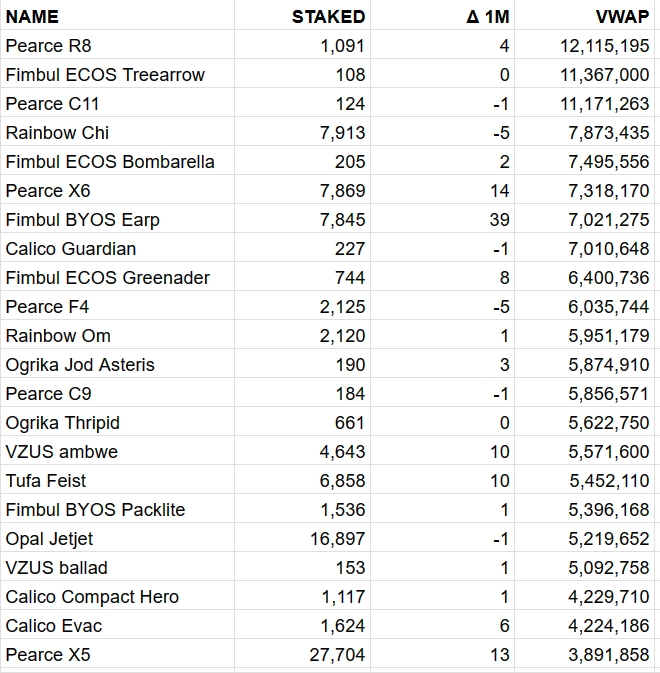 • Total VWAP of staked ships increased to $165.6m • As the developer is not selling many ships at the moment, the total VWAP is expected to remain quite stable • Users unstake ships they want to trade and stake those that aren’t very interesting to trade