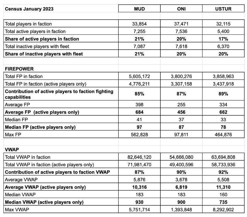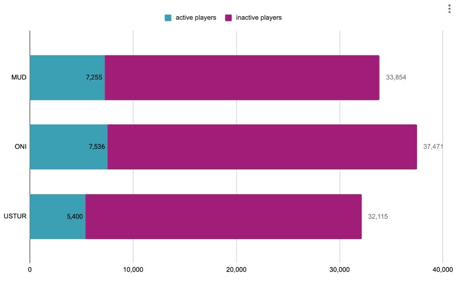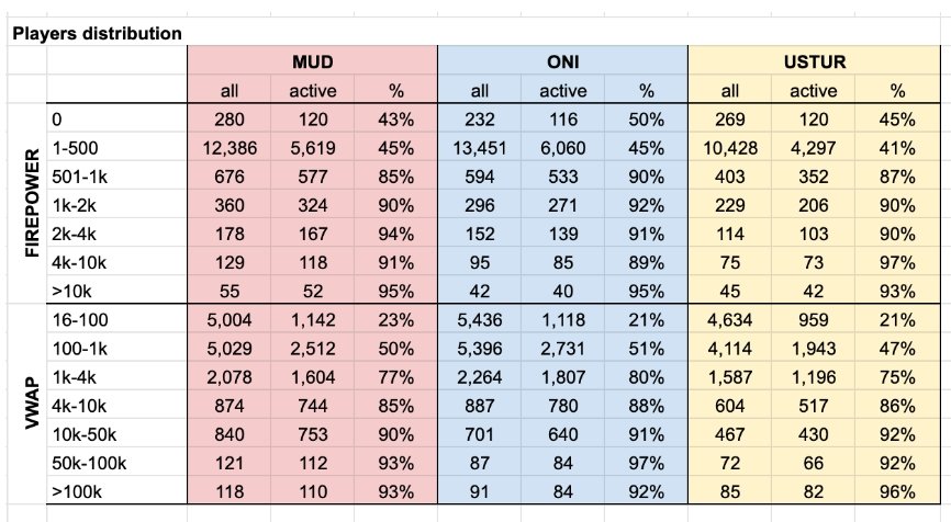 Growth of total active firepower, especially for Oni (Mud 2%, Oni 5%, Ustur 2% MoM), which is closing the gap with Ustur.