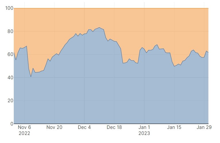 2.4 SHIPS – buy vs. sell trading volume A trade is executed when a market order is placed on the Star Atlas Marketplace. If the order is a buy, the best ask price will be filled. If it is a sell order, the best bid will be filled. We measure the trade volume of a buy order placed at the market as buy trade volume and the trade volume of a sell order placed at the market as sell trade volume. When an order is placed as a limit order, no trade is made but liquidity is provided. The chart shows the 7 day average percentage of the total trading volume for buy trading volume and sell trading volume. We believe this chart should be interpreted as a sentiment indicator.