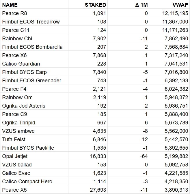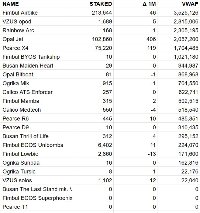 Total VWAP of staked ships increased slightly to $165.9m