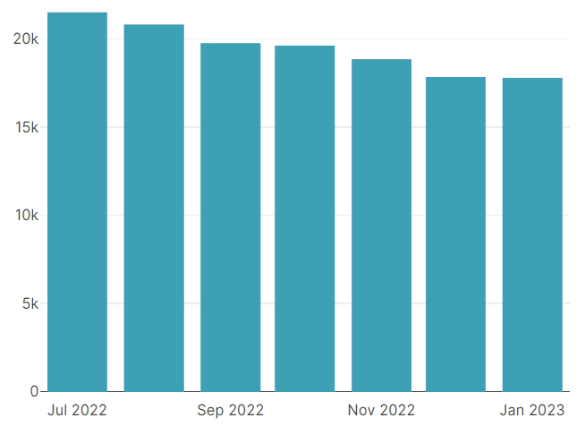 New faction registrations in January down to 130 registrations in the last week of the month