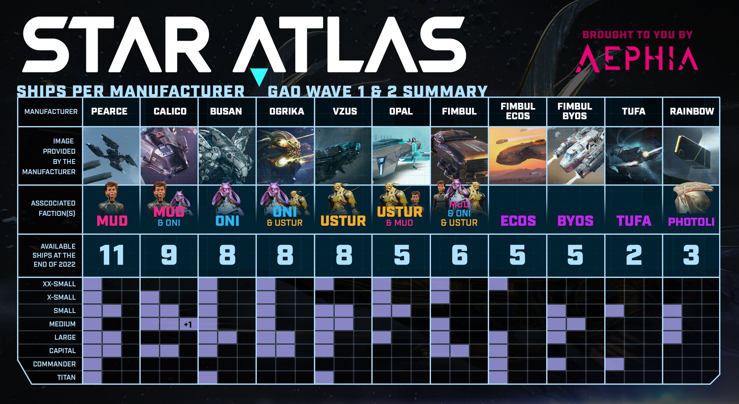 Star Atlas Ships per Manufacturer Gao 1 and 2