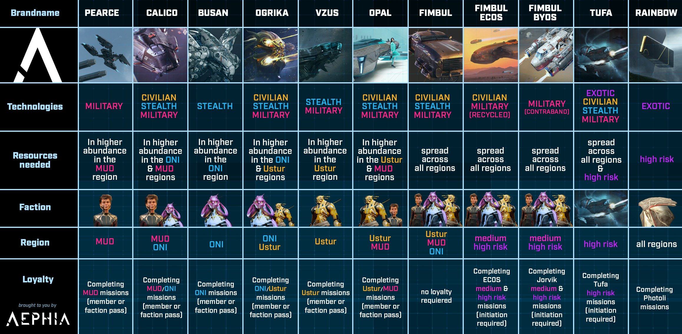 You want to build the ships of a specific manufacturer? This chart shows you everything you need!